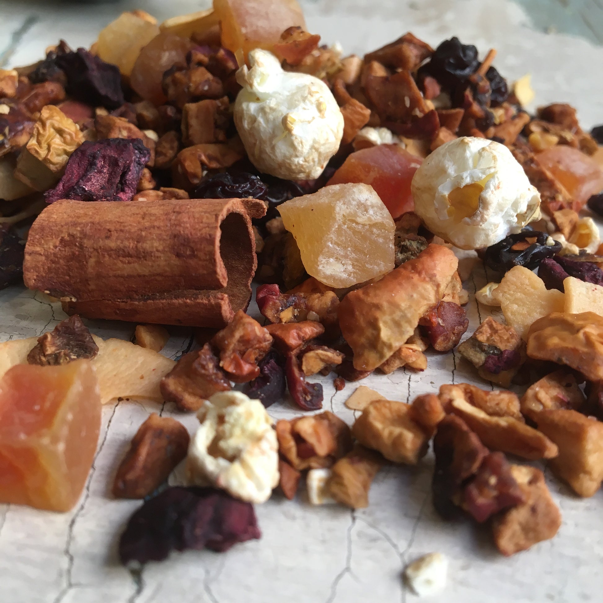Napar z owoców i popcornu. Produkt masowy. Dostępne w opakowaniach 50gr, 100gr i słoikach 90gr. W przypadku zakupów o większej wadze konieczne jest dokupienie większej ilości sztuk (w tym przypadku określ, czy chcesz otrzymać produkt w oddzielnych jednostkach, w przeciwnym razie wszystko zostanie zapakowane w tę samą torbę).
